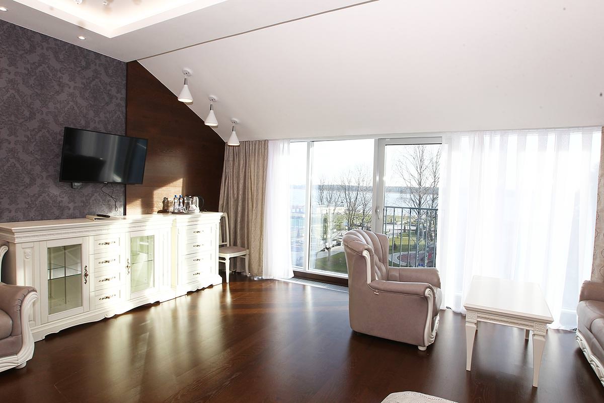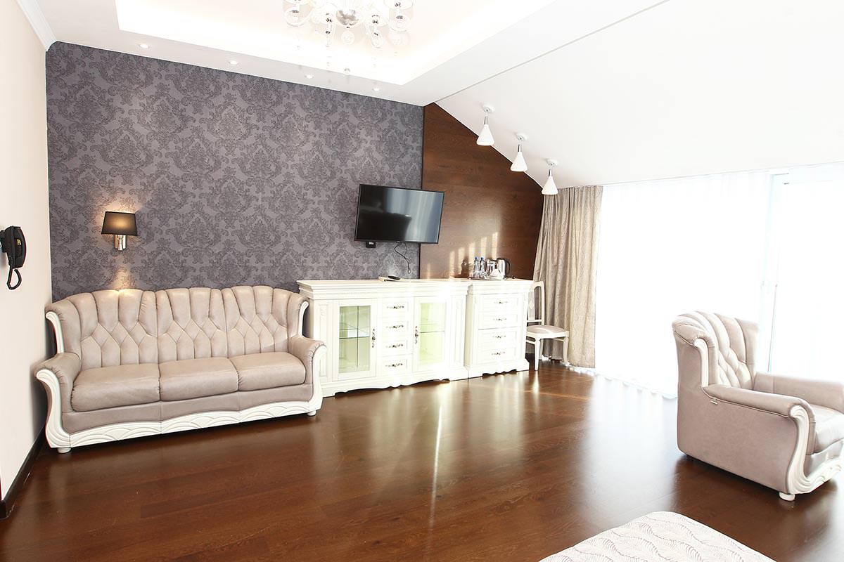 Номер данной категории расположен во втором корпусе санатория. Из панорамных окон номера открывается живописный вид на водохранилище. В номере созданы все условия для уютного размещения больших семей (из пяти человек).