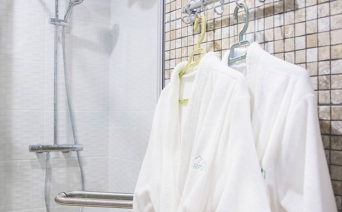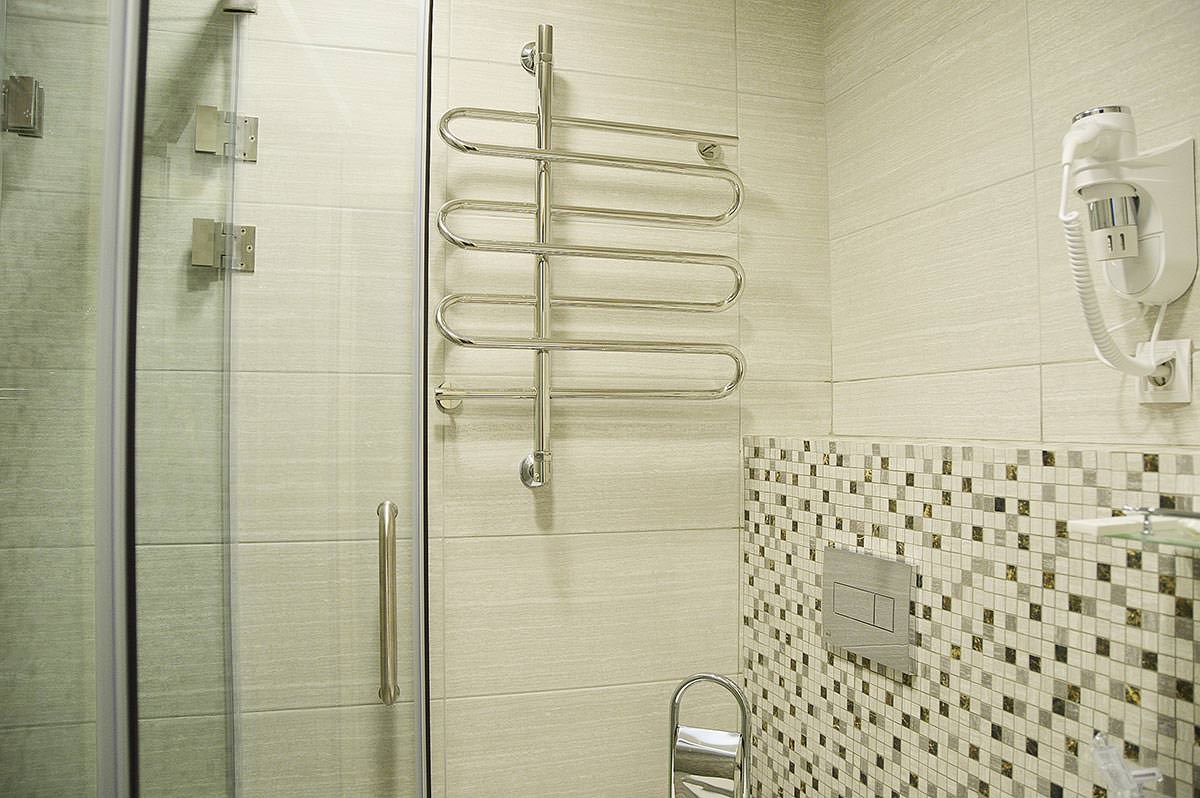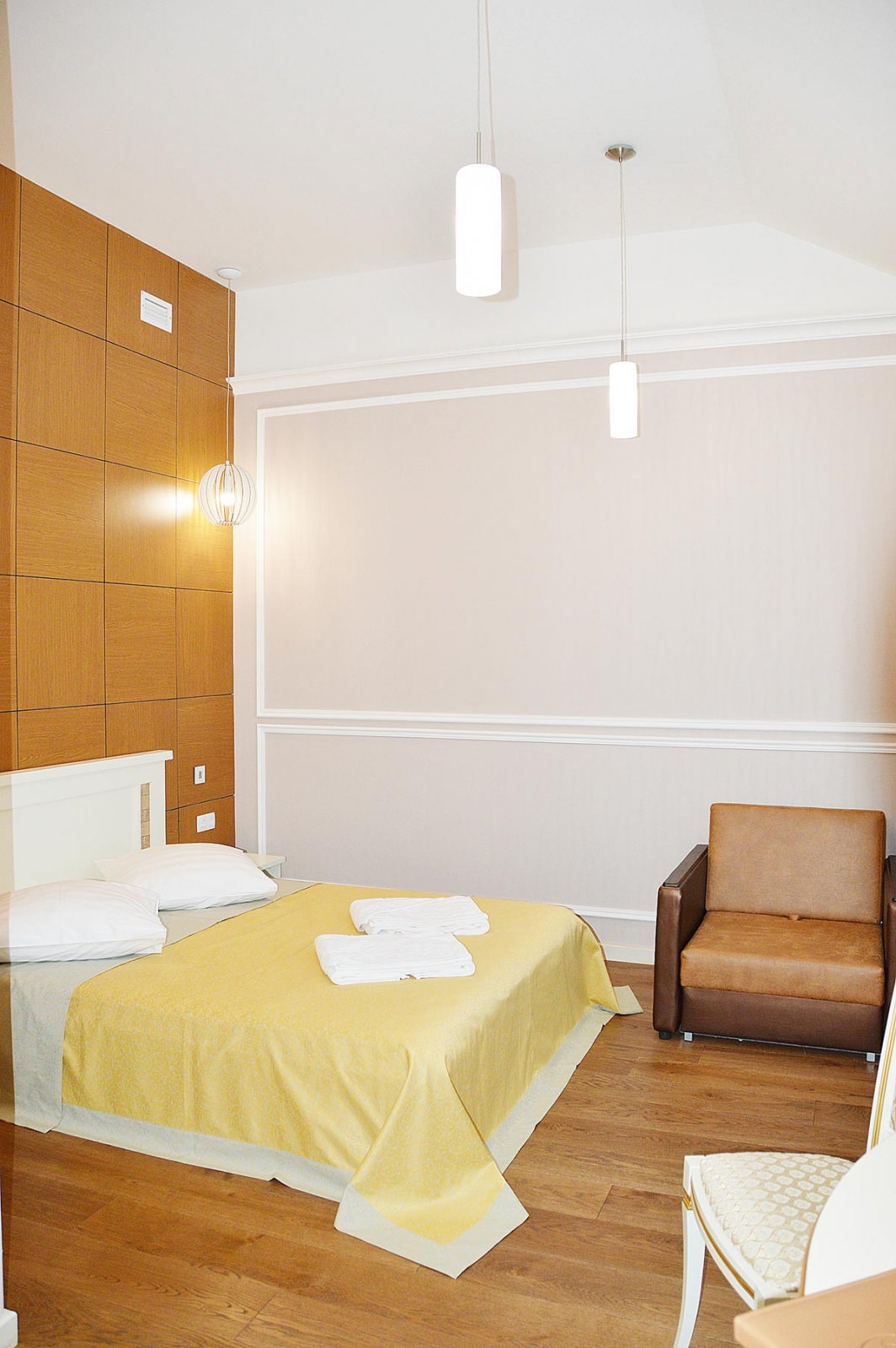 В номере созданы все условия для уютного двухместного семейного размещения на одной большой кровати.