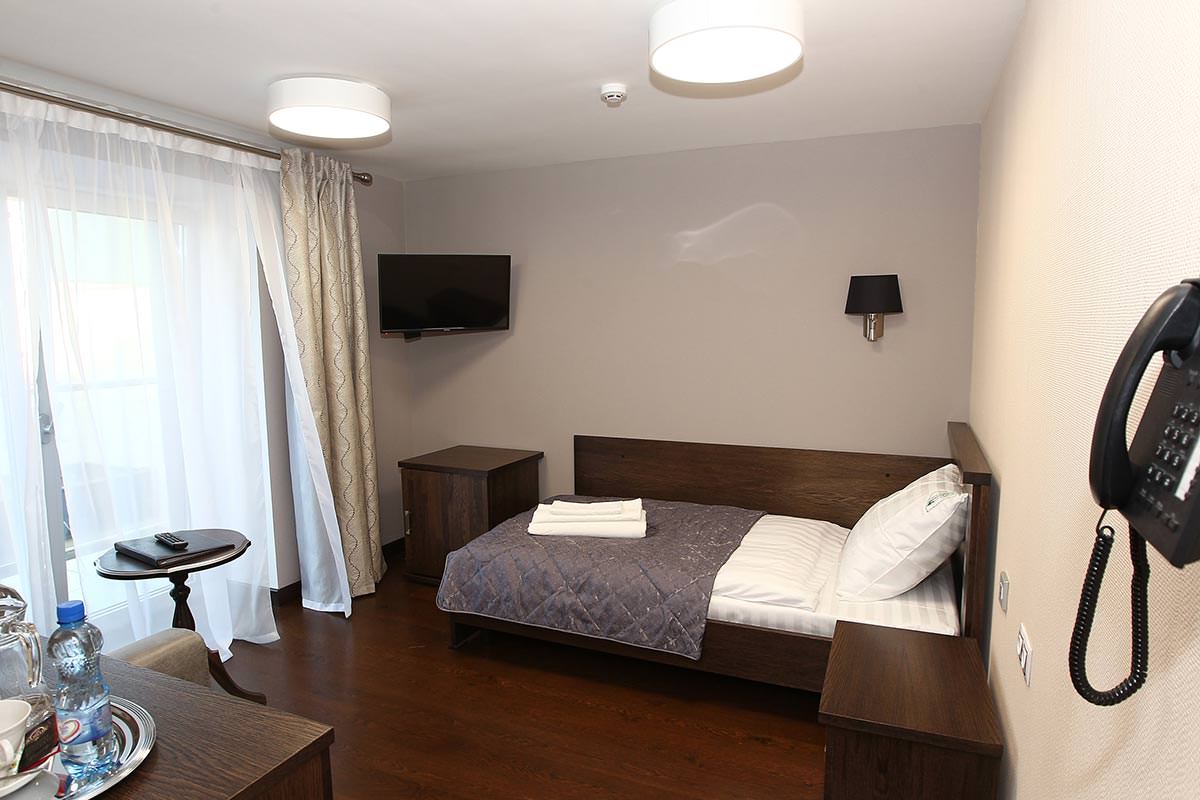 Номера данной категории расположены в обоих корпусах санатория. В номере созданы все условия для уютного одноместного размещения. Средняя площадь номера - 17 м кв. На выбор клиентов представлены номера с балконом и без.