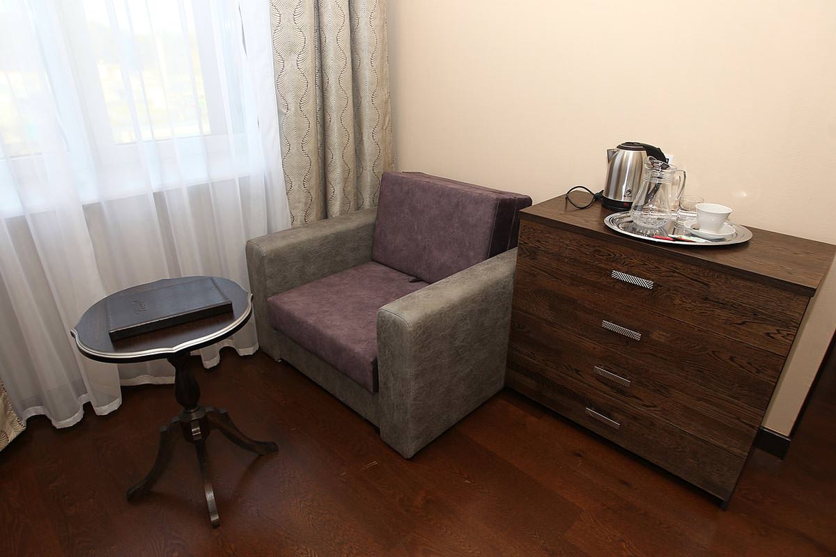 Номера во втором корпусе помимо кровати шириной 120 см укомплектованы раскладным креслом-кроватью, что позволяет разместить ещё одного человека на дополнительном спальном месте. В первом корпусе представлена стандартная односпальная кровать шириной 90 см.